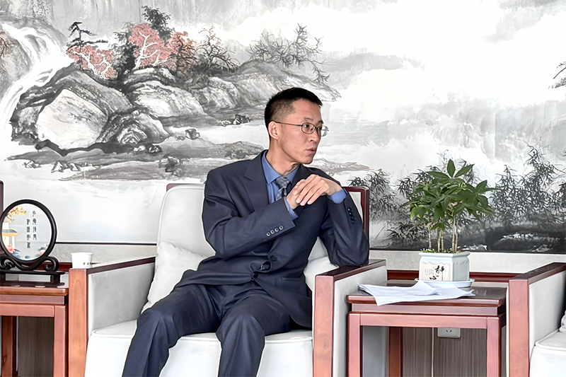图:君安储能董事长赵丹博士接受记者采访